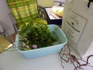 Blumen, Zweige, Nüsse… alles was gefällt und Garten und Wiese so hergeben, bereitstellen.