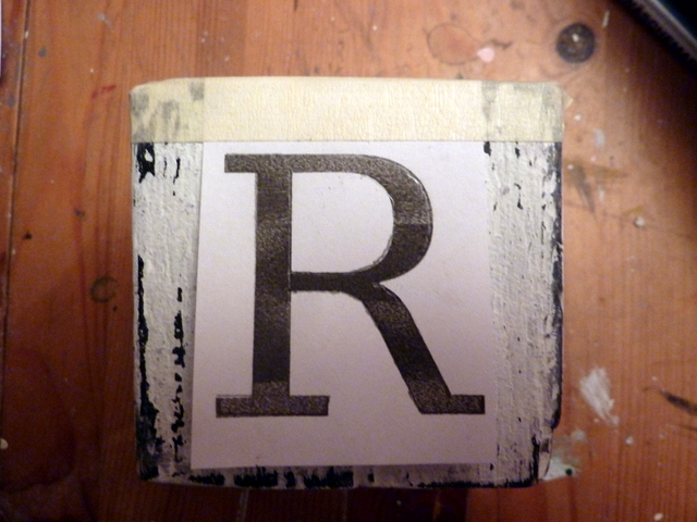 Dafür habe ich mir eine passende Schrift gesucht und dann die Buchstaben ausgedruckt. Auf den Würfel geklebt….