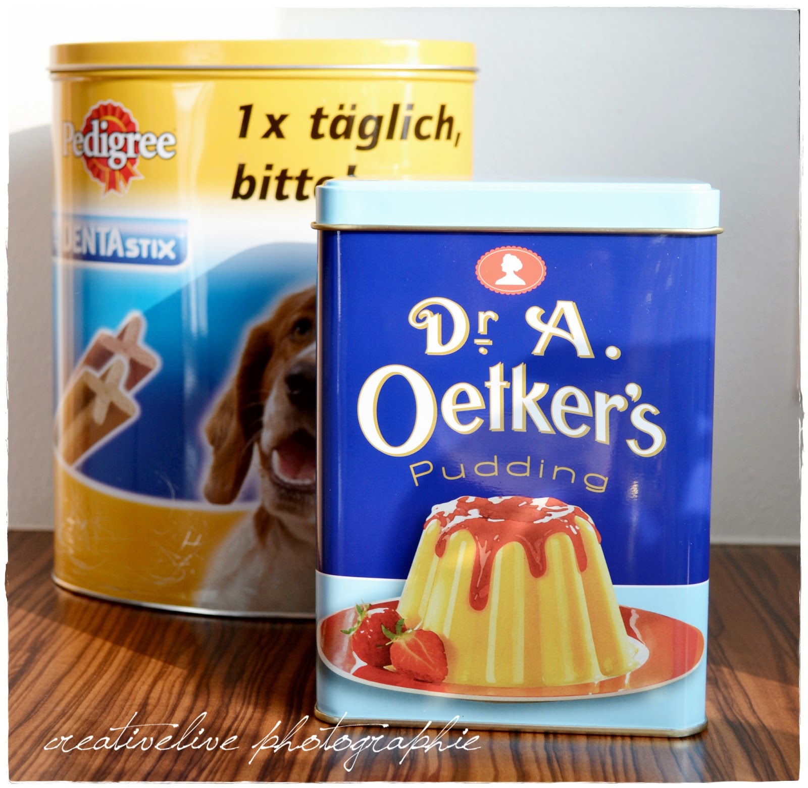 In die weißen Dose kommen die Leckerlies für unseren Hund.