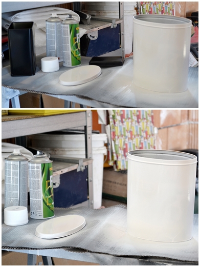 Das ist eine super Idee, ich habe auch noch alte Keksdosen, die müssen jetzt dran glauben. Ich bin im Moment sowieso in der Umspritzphase, und meine Männer meckern schon immer, dass es trotz Lüften im ganzen Haus nach Farbe stinkt. (Hm, ich mag den Geruch…)