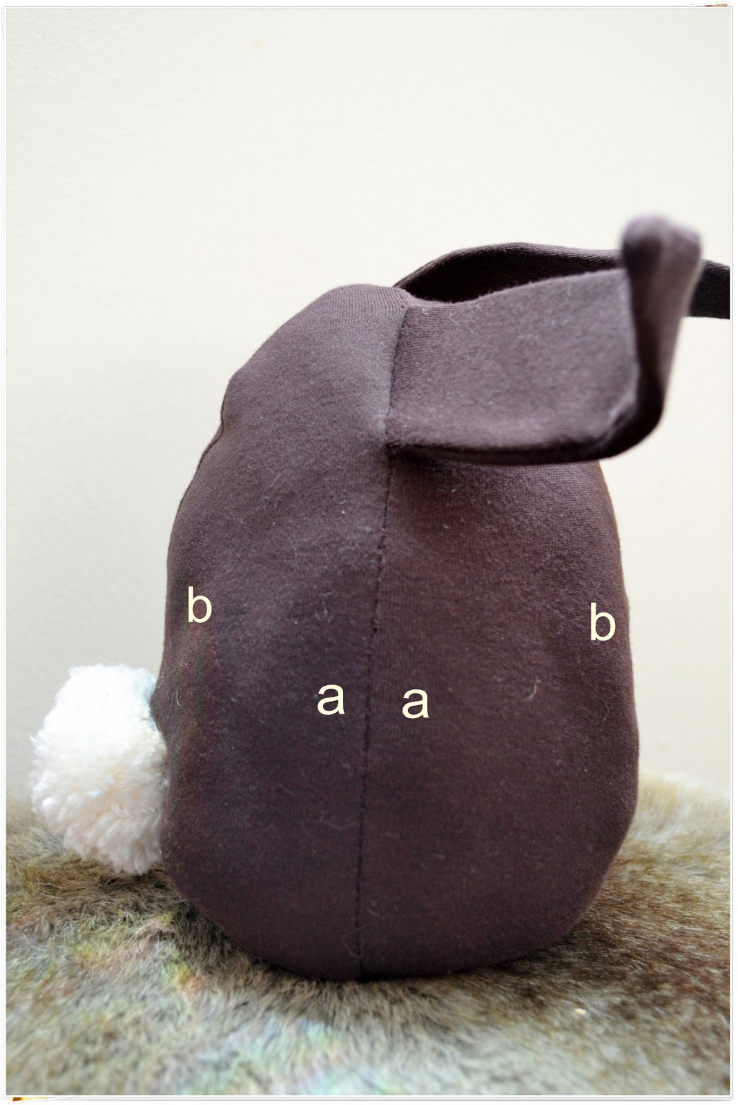 Die Ohren 4x ausschneiden und je 2 Teile zusammen nähen und umstülpen.