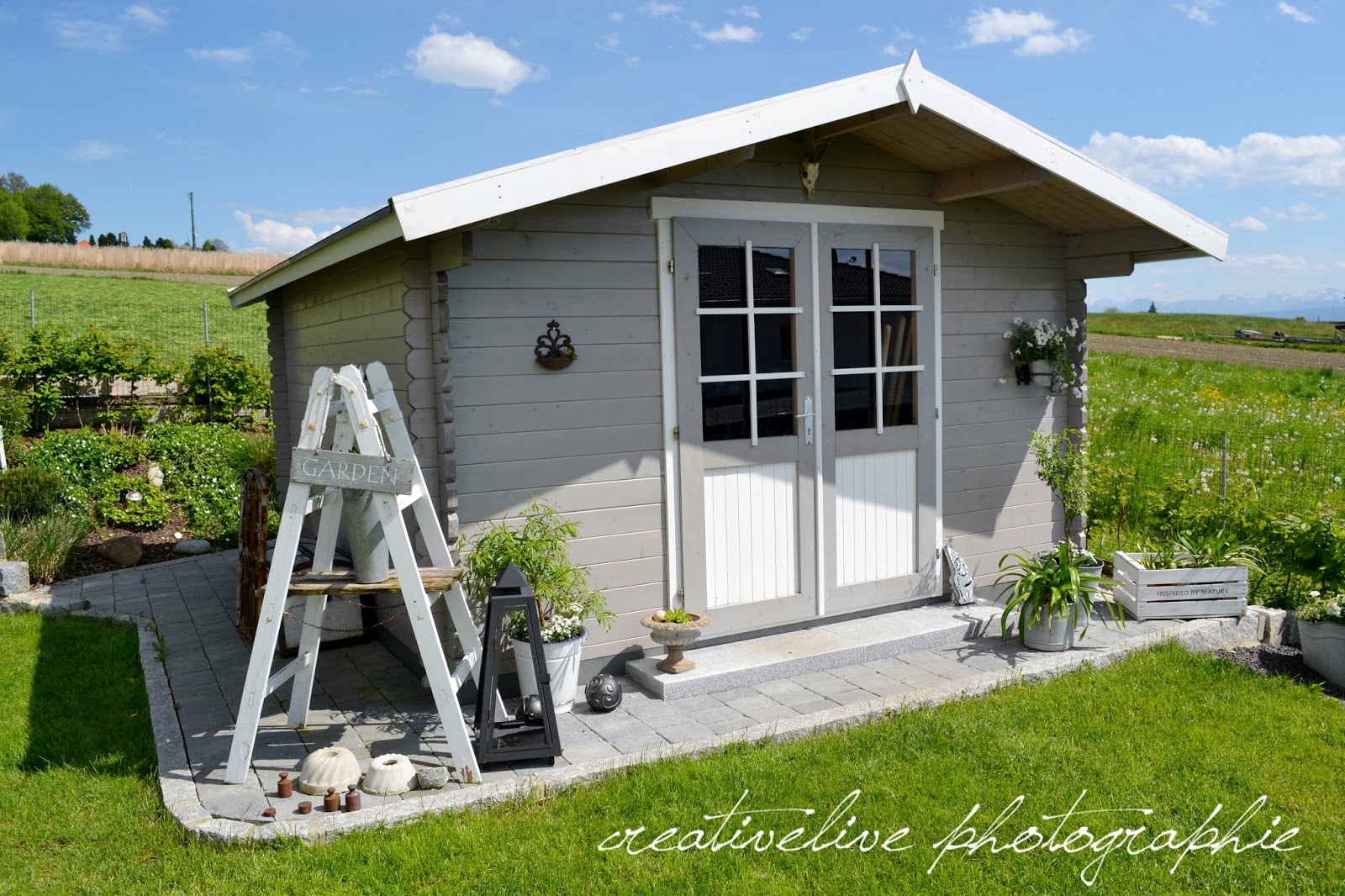 Wow, das sieht alles noch so neu und schön aus bei Euch! Gartenhäuschen in grau-weiß ist was wirklich schönes, leider ist unser hutzeliges braunes inzwischen so zugewachsen, da kommt man gar nicht mehr mit Farbe dran ;o)…