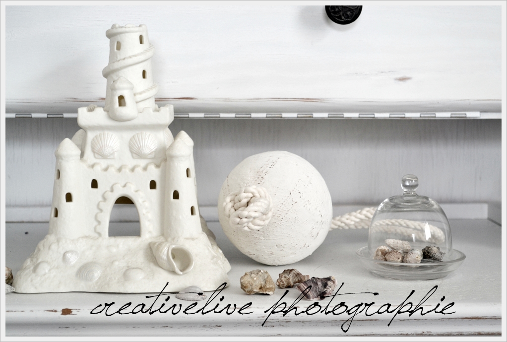 Deine Deko ist der Hammer! Eins schöner als das andere. Diese dicken Taue überall finde ich klasse. Und den dekorierten Setzkasten! Die Sandburg ist auch toll!