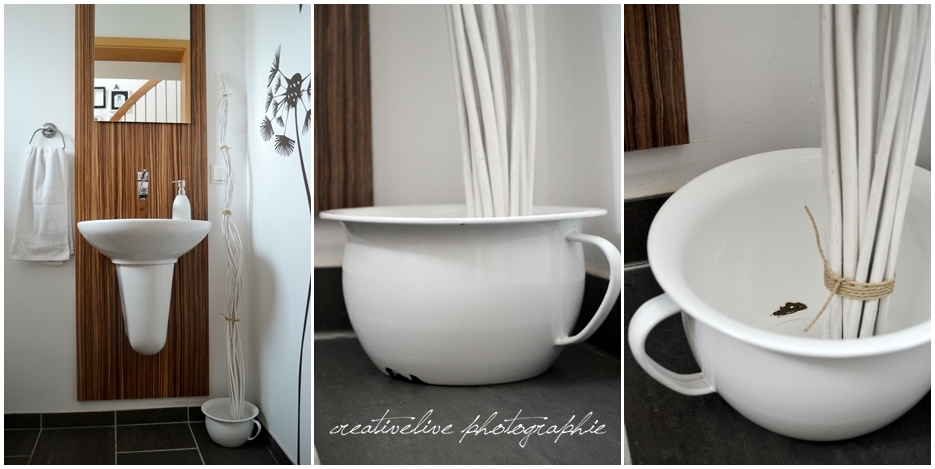 Das Du die Tafel so gelassen hast finde ich wunderbar. So toll sieht es nun aus mit dem weißen Bild darauf. Beim Nachttopf gefällt mir die Idee, auch wenn ich als gelernte Dekorateurin die Proportionen nicht stimmig finde, aber das ist, wie Alles im Leben, Geschmacksache ;-). Mir hätte der Nachttopf als Pflanzgefäß, wie Du es ja auch gerne mit Suppenschüsseln etc. machst, gut gefallen. Vielleicht auf dem neuen Hocker im Bad :-)? Nein, Du machst das super und wenn Du mein Haus sehen könntest, würdest Du vor Lachen zusammenbrechen. Da passt Nichts zueinander und es ist viel zu vollgestopft. Meine Trödelleidenschaft und die Tintin Sammlung meines Mannes ergeben ein großes Chaos :-).