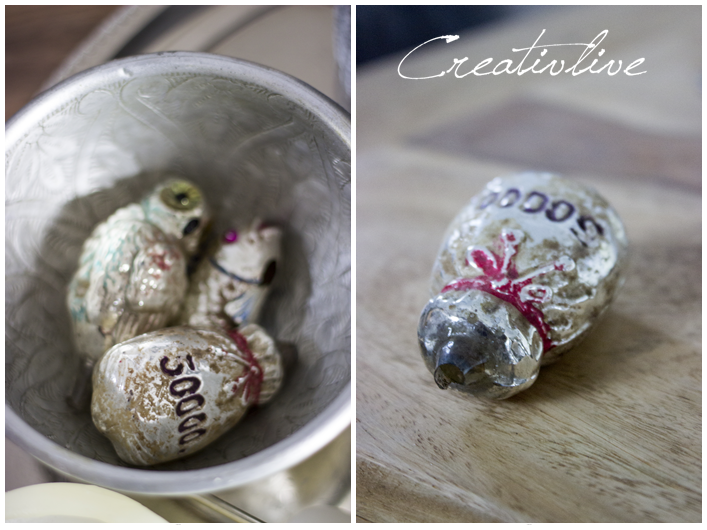 und meinen wunderschönen alten Baumschmuck habe ich in verschiedenen Gefäßen verteilt.