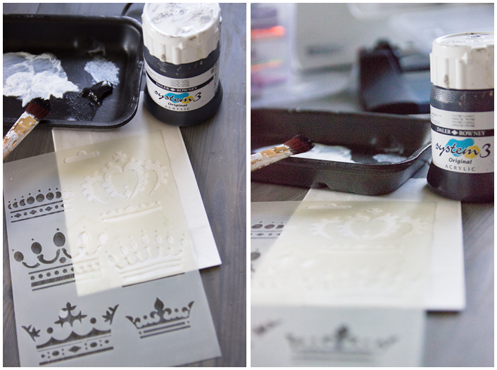 Die Krone habe ich ganz “normal” mit Schablone und Farbe aufgebracht.